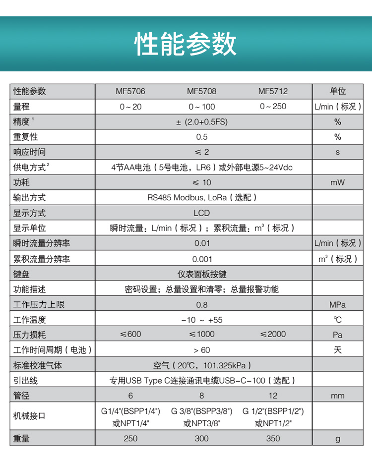 升級版(bǎn)MF5712-G氣體質量(liang)流量計參(cān)數