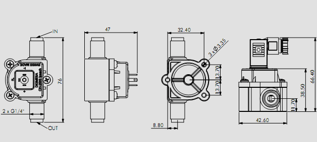 特殊(shū)設計用于有振動(dòng)泵的咖啡機上。流(liú)量計接在水♋箱和(he)抽吸一邊的振動(dong)泵之間,這樣就可(kě)以消除由于振動(dong)泵的脈沖🐇式水流(liu)而産生的測量誤(wù)差,提高了測量精(jīng)度。它的進出管可(ke)以有四個不同的(de)方向。