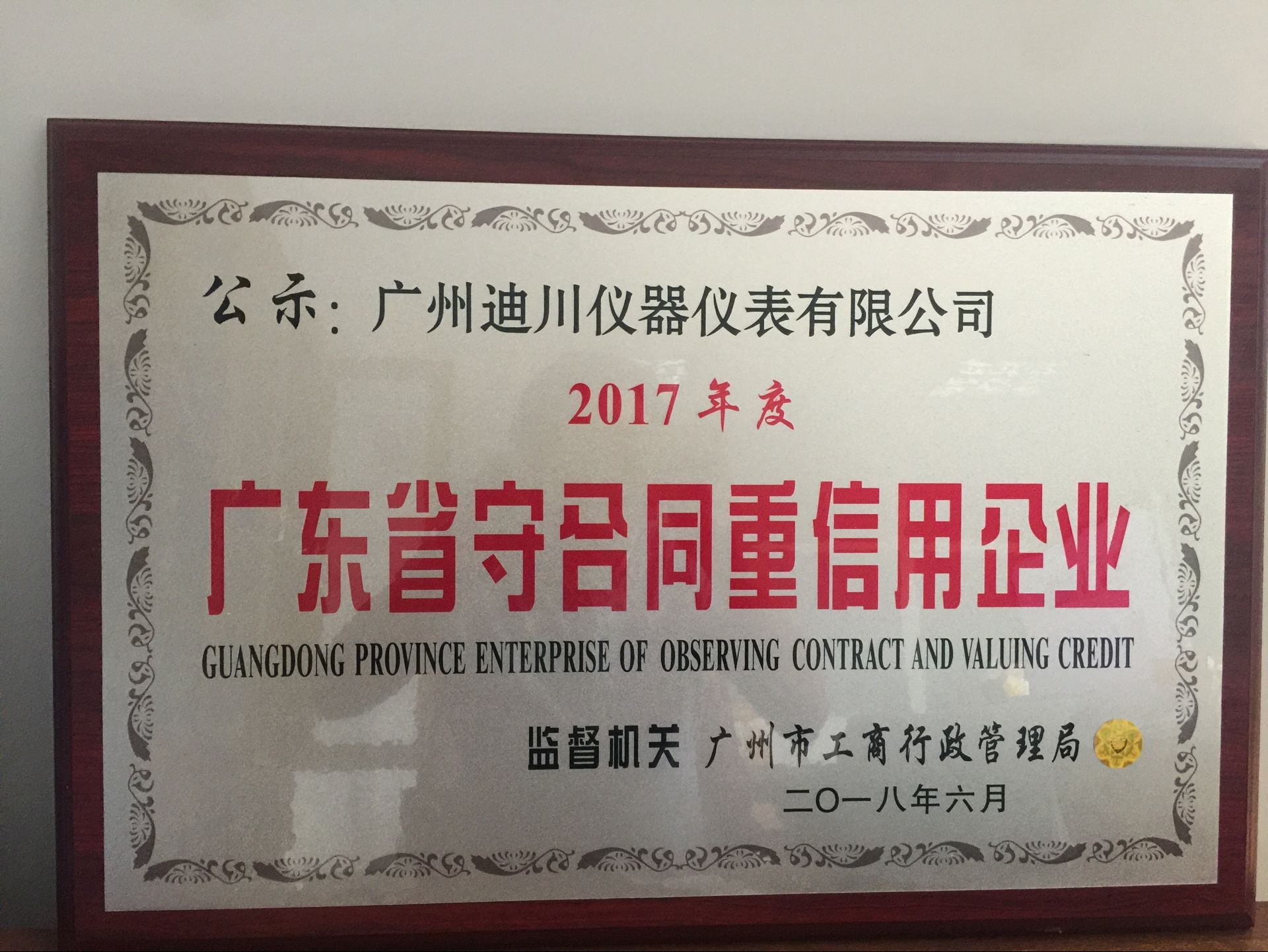 熱(rè)烈祝賀公司榮獲(huo)2017年度廣東省守合(hé)同重信企業