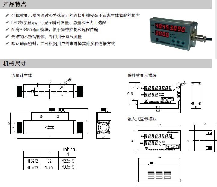MF5200帶壓力顯示(shì)型數顯氧氣(qi)流量計 特點: