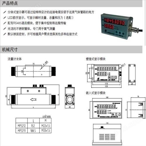 MF5200科研氧氣流(liu)量計 具有可分離(lí)的顯示器,具有RS485網(wang)絡通訊接口以及(ji)用戶自定報警功(gōng)能能更好的實現(xian)網絡傳輸和流量(liang)監控。