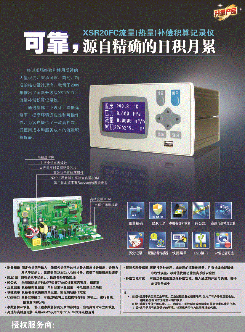 1.具(ju)有溫度壓(ya)力補償功(gōng)能的流量(liàng)積算儀