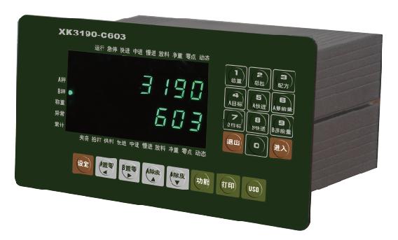 XK3190-C603是采用高速高性(xìng)能 Cortex-M3内核 32位 ARM處理器的(de)稱重儀表。本儀表(biao)可方便地與 2路獨立應變電阻(zǔ)稱重秤台連接組(zǔ)成非連續累計🥵秤(chèng)、雙鬥包裝秤等,适(shì)用于各種高速度(du)與高精度稱重要(yao)求的控制場合。