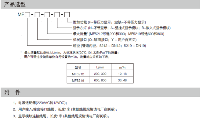 MF5212氣體質(zhi)量流量計産(chǎn)品選型: MF5212-200氣體質量流(liu)量計